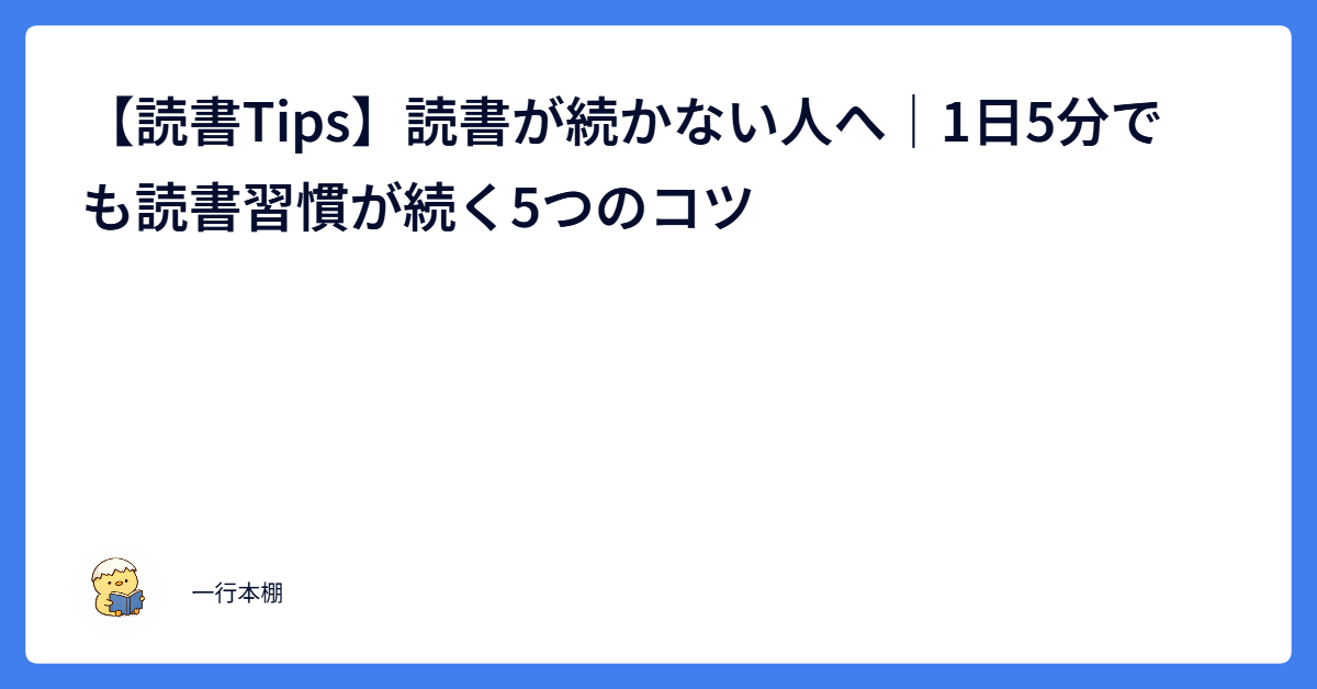 人気記事Popular Post 【読書Tips】スマホの「ホーム画面」をいじるだけ。無意識のSNSをやめて、読書時間を劇的に増やす2つのハック 【読書Tips】Kindleで0円!「まず1冊」に迷ったら読んでほしい、不朽の名作3選。 本屋大賞👑とは?初心者向けにわかりやすく解説 変身┃人であれなくなるのは、案外すぐそばにあるかも 【読書Tips】並行読書のススメ ┃ 「途中で別の本に浮気する」は、脳科学的に大正解でした。 人間椅子┃30分で読める、狂気の「告白文」 新着記事News ショートショートの王様・星新一|1001編を書いた神様の、意外すぎる素顔 2026.04.03 作品の舞台裏 【読書Tips】読書が続かない人へ|1日5分でも読書習慣が続く5つのコツ 2026.03.27 読書Tips ゴールデンスランバー|国家犯罪者に仕立て上げられた男の、逃亡と絆の物語 2026.03.25 一行の本棚 本屋大賞👑とは?初心者向けにわかりやすく解説 2026.03.21 作品の舞台裏 もっと見る おすすめ ひとりごと 一行の本棚 作品の舞台裏 動画の裏側 読書Tips 一行本棚Profile野生の読書好き。ブログ、YouTubeを運営しております。 よかったらYouTubeチャンネルもチェックしてみてください。https://www.youtube.com/@one_line_booksプロフィールを読む